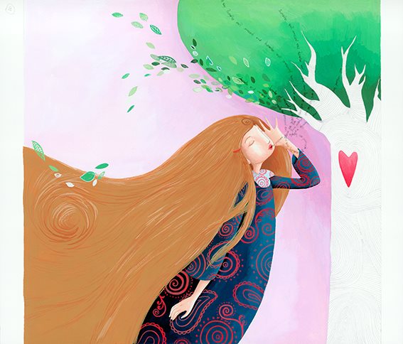 Σ’ ένα κλαδί κρέμεται ένα φόρεμα. Πράσινο, σαν τα φύλλα του δέντρου, με μια κόκκινη βελούδινη καρδιά… στα δεξιά.