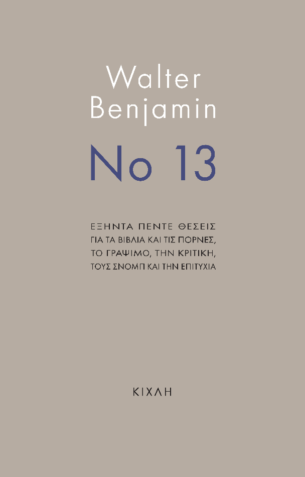 Συνεχιστής της «εριστικής» παράδοσης ενός Λίχτενμπεργκ ή ενός Σοπενχάουερ, ο Βάλτερ Μπένγιαμιν κατέχει θέση ξεχωριστή ανάμεσα στους αποφθεγματογράφους του 20ού αιώνα. Το βιβλίο αυτό περιέχει μια επιλογή από τους περιβόητους αφορισμούς του, οργανωμένη γύρω από το σημαδιακό «Νο 13»: Εξήντα πέντε θέσεις για τα βιβλία και τις πόρνες, το γράψιμο, την κριτική, τους σνομπ και την επιτυχία. (Από την παρουσίαση στο οπισθόφυλλο του βιβλίου)