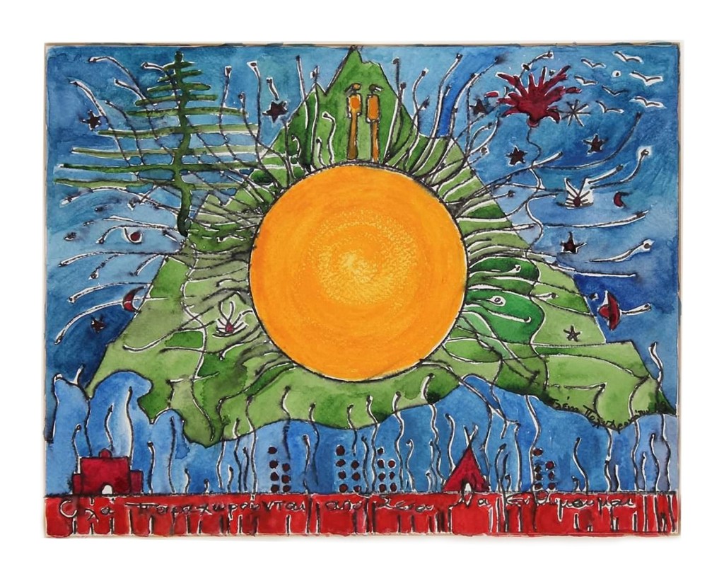 «Τι είναι δυσκολία; Αυτή η ερώτηση κυριαρχούσε στο μυαλό μου κατά την περίοδο της καραντίνας και μπροστά μου ανοίγονταν δυο δρόμοι: Να εγκαταλείψω ή να εργαστώ. Η επιλογή ήταν μονόδρομος και ήταν ένα μήνυμα αυτοσυνειδητοποίησης και αυτοβελτίωσης. Να εργαστώ και μέσα από την δημιουργία να θέτω ξανά και ξανά τις βάσεις μιας καθημερινότητας ήρεμης και θετικής, γεμάτης με υπομονή και –ναι, γιατί όχι- μιας καθημερινότητας χαράς, όχι γιατί είμαι αναίσθητη στο ανθρώπινο δράμα, αλλά γιατί είναι πρωταρχικό καθήκον η φροντίδα της νοητικής μας δομής. Ζωγράφιζα, λοιπόν, και κάθε μέρα, κάποιες φορές, ολοκλήρωνα και ένα έργο. Ένα έργο με λόγια ενδυνάμωσης που το υποστήριζαν ή, θα μπορούσα να πω, το έκτιζαν γραμμές ευθείες, κάθετες, οριζόντιες, διαγώνιες, τεθλασμένες, καμπύλες, κύκλοι και χρώματα… Ένας εσωτερικός διάλογος ανάμεσα στη μορφή και το περιεχόμενο ή αλλιώς ένας διάλογος συνεργασίας και αρμονικής συμβίωσης ανθρώπου και φύσης.» Ελένη Πολυχρονάτου