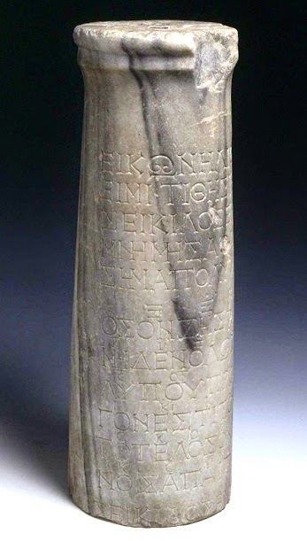ΕΙΚΩΝ Η ΛΙΘΟΣ ΕΙΜΙ. ΤΙΘΗΣΙ ΜΕ ΣΕΙΚΙΛΟΣ ΕΝΘΑ ΜΝΗΜΗΣ ΑΘΑΝΑΤΟΥ ΣΗΜΑ ΠΟΛΥΧΡΟΝΙΟΝ (Εγώ η πέτρα είμαι μια εικόνα. Με έβαλε εδώ ο Σείκιλος ως διαχρονικό σήμα αθάνατης μνήμης).