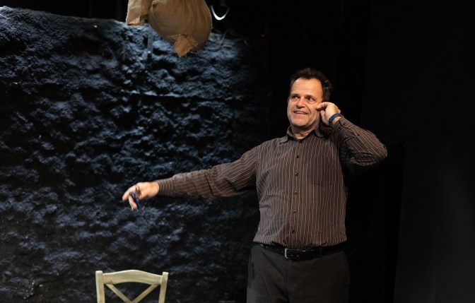 Με τη σταθερή συνεργάτιδά μου Κάλλη Καραδάκη έχουμε μια φοβερά γόνιμη, επομένως σφοδρά συγκρουσιακή, σχέση. Κατά παράδοση, της προτείνω τις πρώτες ιδέες που μου έρχονται στο μυαλό για να τις απορρίψει πανηγυρικά, άλλοτε συζητώντας διεξοδικά τις πάει λάθος με αυτές κι άλλοτε με μια μονολεκτική φράση του τύπου «αηδίες», «χαζομάρες» κ.λπ. (Γελάει). Γνωριζόμαστε από το Λύκειο και υπάρχει βαθιά αγάπη και αλληλεκτίμηση. Το γόνιμο διάστημα στη δουλειά μας ξεκινά ακριβώς μετά την πρώτη αυτή απόρριψη. Έχει πεταχτεί το εύκολο, το πασιφανές, το πρόδηλο κι αρχίζει η έρευνα για κάτι βαθύτερο, ουσιαστικότερο, εκφραστικότερο. Έτσι έγινε κι εδώ. Οι πρώτες σκέψεις ήθελαν κάτι πολύ ρεαλιστικό, σχεδόν νατουραλιστικό, για σκηνικό, γρήγορα όμως οδηγηθήκαμε από κοινού στη δημιουργική αφαίρεση και στο εύρημά της, που θα δείτε στη σκηνή, το οποίο με κέρδισε αμέσως μόλις μου το ανακοίνωσε και κέρδισε ολοκληρωτικά και την Καρόλ Φρεσέτ, όταν είδε την παράσταση του έργου στην Τρίπολη.